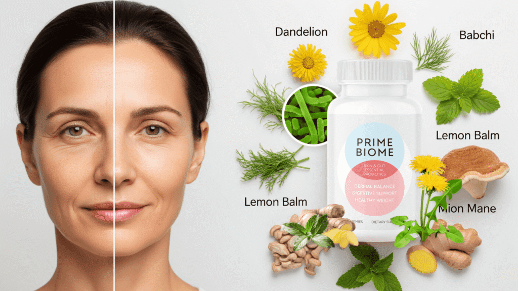 PrimeBiome is built entirely on this principle of the Gut-Skin connection. PrimeBiome’s main work is to restore harmony in your gut microbiome (a group of trillions of bacteria living in your digestive system), believing that a happy gut leads directly to clearer, calmer, and more radiant skin.